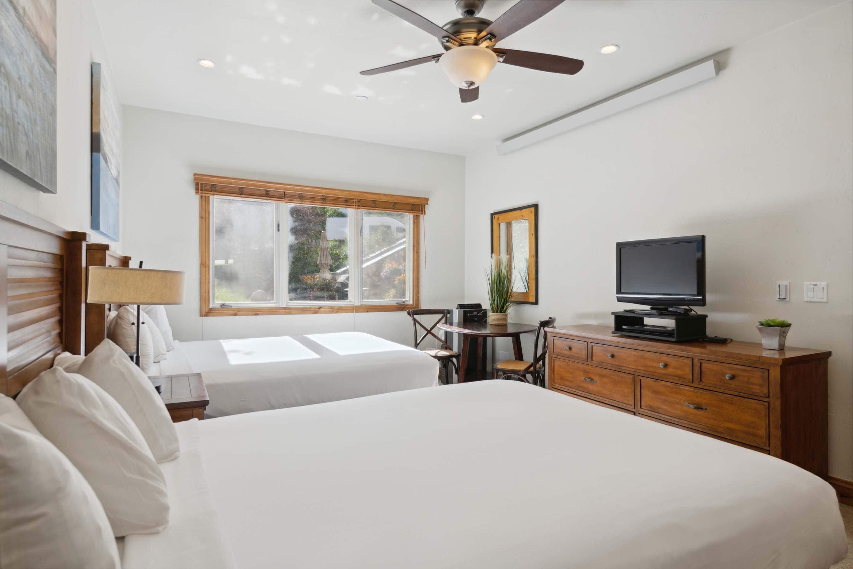 Situated at the base of the mountain, this ski-in, ski-out lodge room offers the perfect space for a mountain getaway. Relax with two queen beds and an attached bathroom, small workspace, mini fridge and coffee maker.Additional highlights include a air conditioning and garage parking.