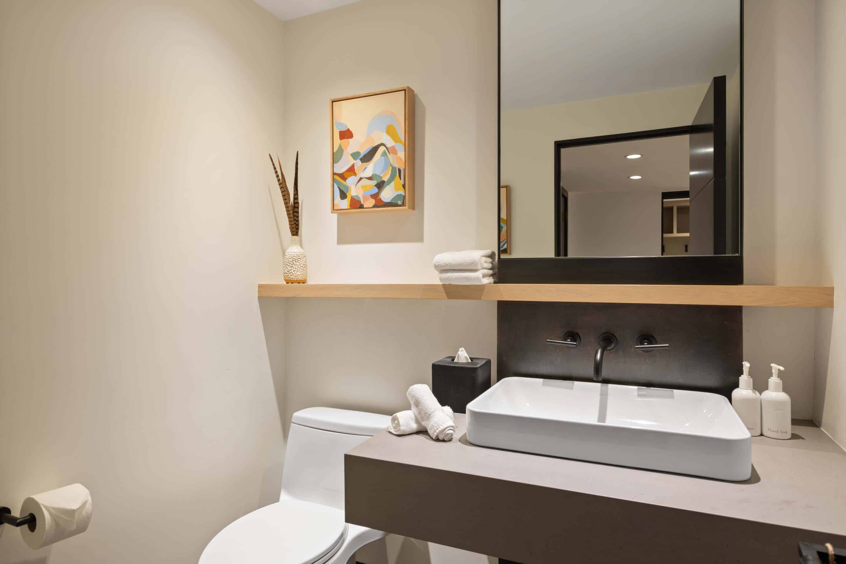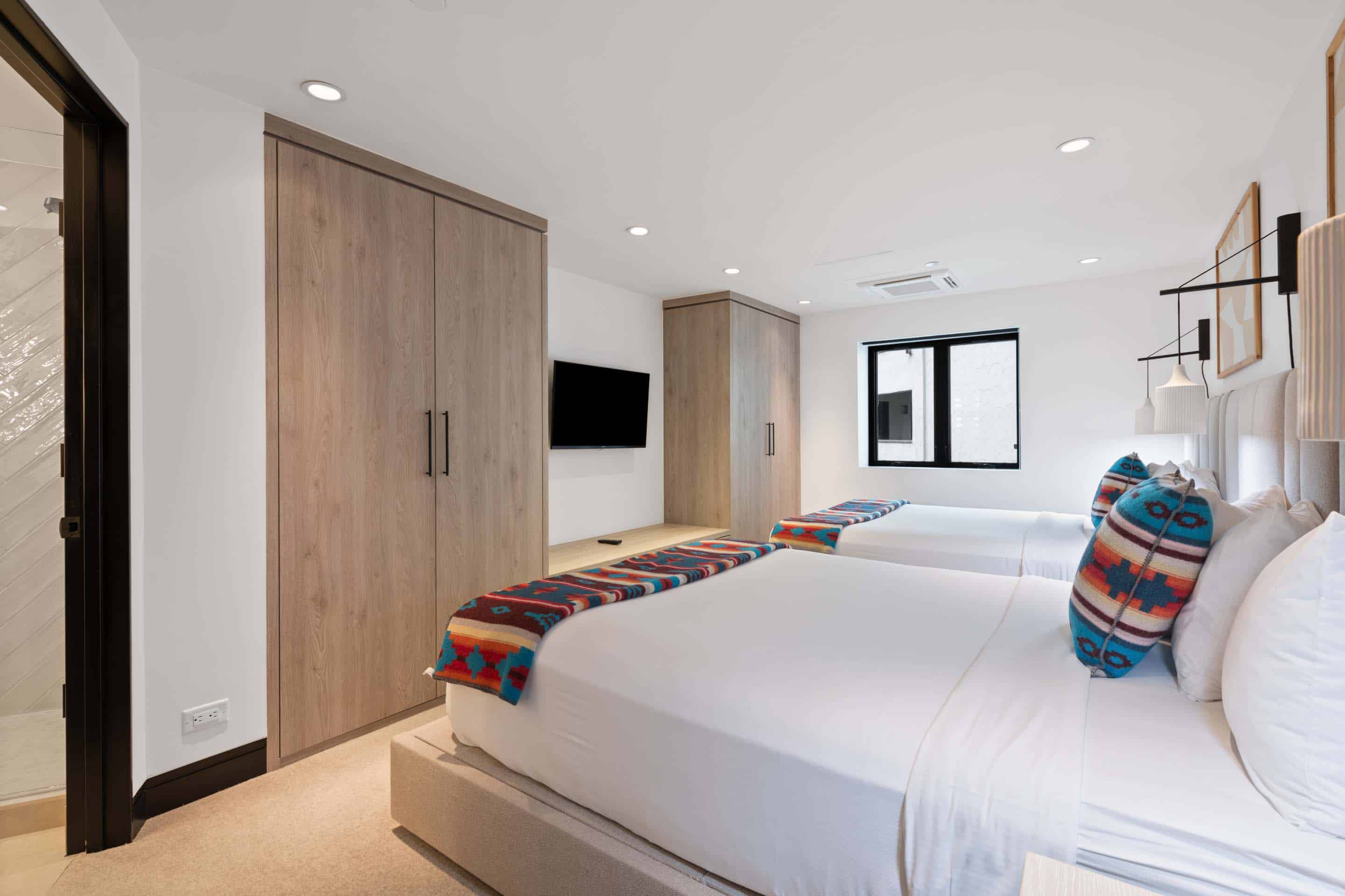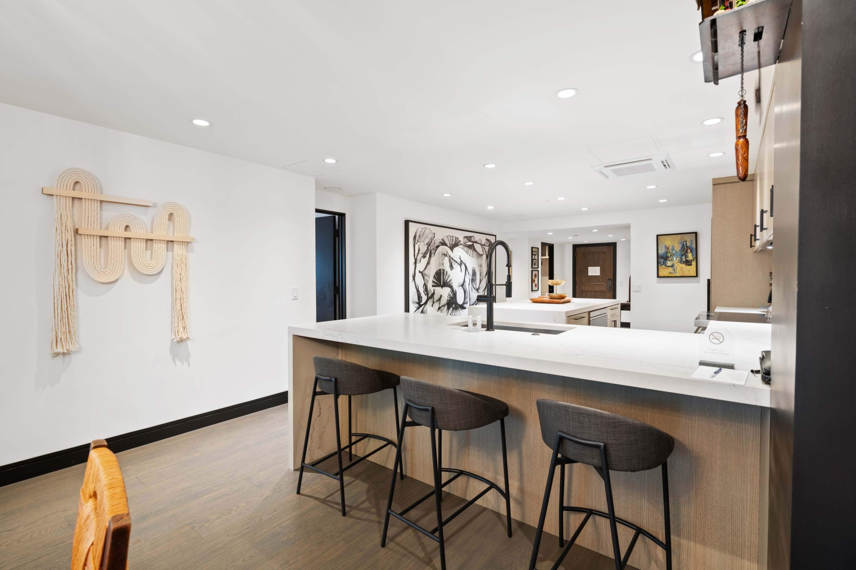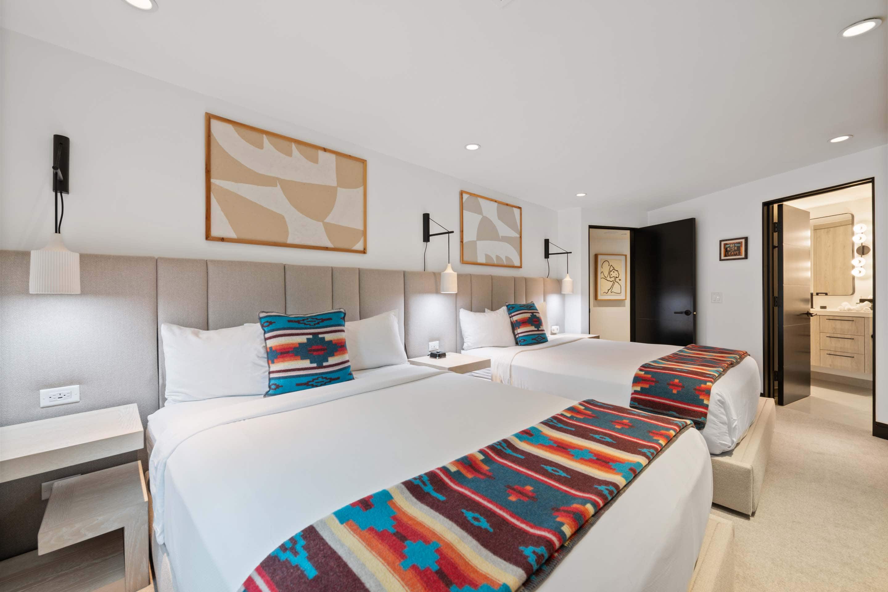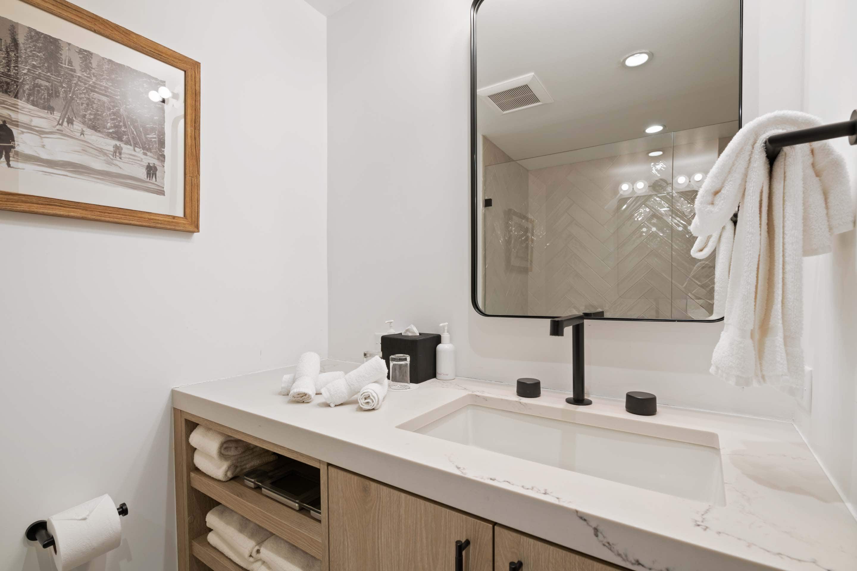 This modern and expansive, platinum three-bedroom residence offers a family room with a full kitchen with granite countertops, and a dining area for six. Additional features include three guest suites, each with an attached bathroom (one has a king size bed, fireplace and desk/workspace, the second has a queen size bed, the third has two double beds), mudroom with storage cubbies, gas fireplace, washer/dryer, outdoor terrace, and garage parking.